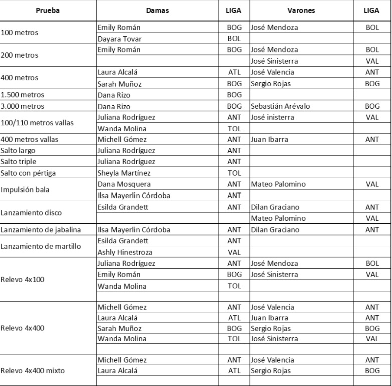 Entre los nombres a seguir aparecen talentos como Emily Román en velocidad, así como los lanzadores Dilan Graciano, actual número uno del mundo en su categoría en jabalina, e Ilsa Mayerlín Córdoba, quien recientemente superó el récord nacional que ostentaba la medallista mundial Valentina Barrios. Las pruebas se llevarán a cabo en el estadio Rommel Fernández y en el Centro de Alto Rendimiento Pandeportes, en la Ciudad Deportiva Irving Saladino, del 22 al 25 de abril.