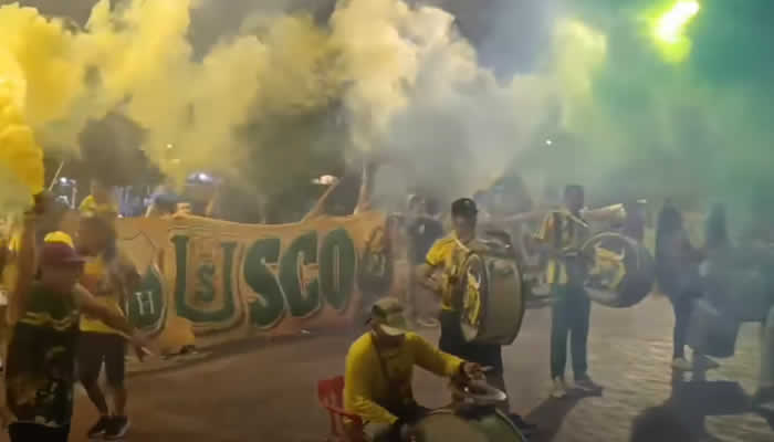 Sobre las 6:00 de la tarde en los alrededores de la Gobernación un grupo de aficionados del elenco huilense mostraron mediante el ondeo de banderas y canticos, el apoyo al club y que este se mantenga en el departanento.