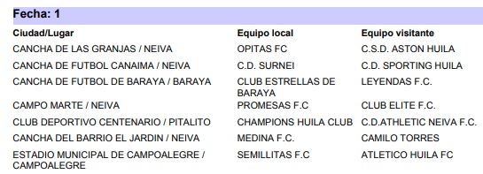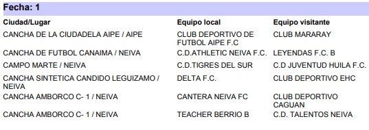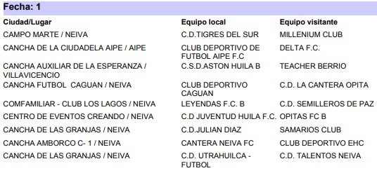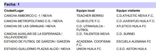 En ese orden de ideas, así serán las primera fechas de cada una de las categorías antes mencionadas del departamental de fútbol: