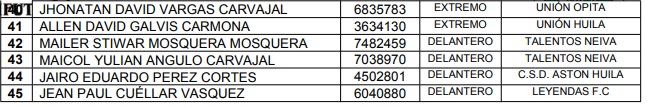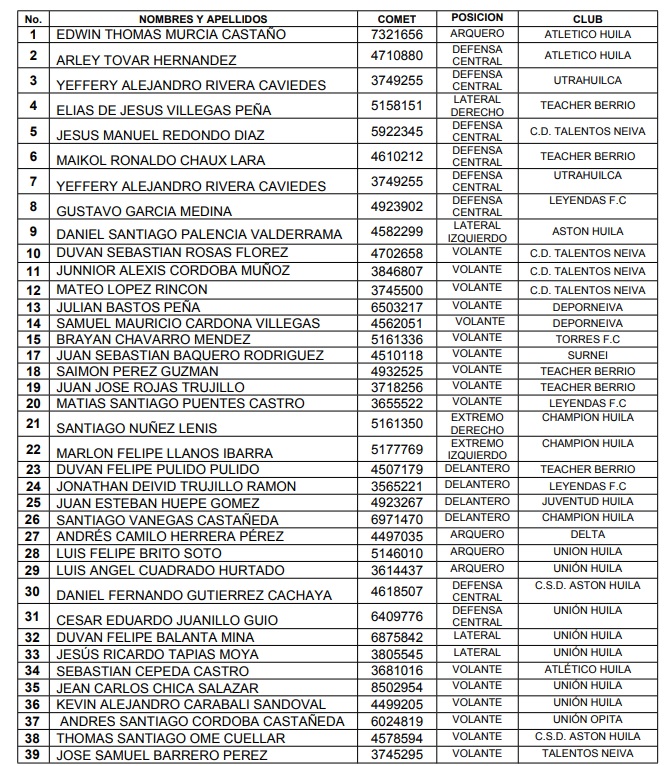 Convocatoria de las selecciones Huila sub - 17 y sub - 19