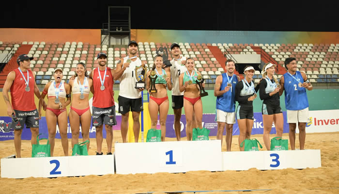 Argentina también celebró doble en los partidos por el bronce. Amieva-Bueno vencieron a Droguett-Quintero (Chile) por 2-0 (21/15, 21/14) y Churin-Ghigliazza derrotaron a Ariana-Karelys (Ecuador) por 2-0 (21/13, 21/16).