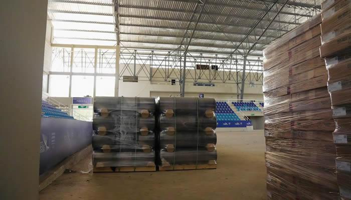 El material, que cumple con los estándares internacionales establecidos por la Federación Internacional de Voleibol (FIVB), incluye postes, mallas, protectores y otros implementos necesarios para garantizar competencias de alto nivel.