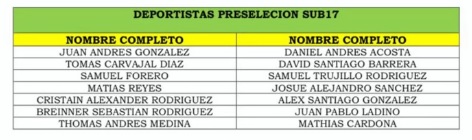 Mediante boletín informativo la Liga de Baloncesto del Huila dio a conocer una preselección sub - 17 de basquetbolistas masculinos.