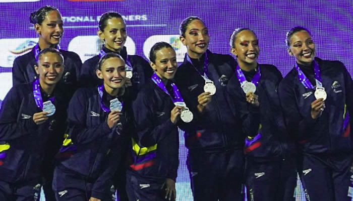 Posteriormente, el país volvió a festejar con la medalla de plata en Equipo Libre, gracias a la sólida presentación del conjunto integrado por Luisa Botero, Isabella Franco, Valeria Jurado, Juliana Pacheco, Estefanía Roa, Laura Rodríguez, Mabel Tobón y Tatiana Tobón. El equipo obtuvo 155.9357 puntos, destacándose por su precisión técnica, sincronización y alto nivel artístico.