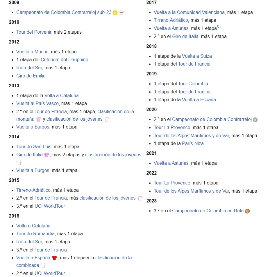Es el único colombiano que logró podio en las tres grandes y de los pocos que ha ganado etapa, el haber coincidido con Chris Froome así como el no recibir un suficiente apoyo de parte de sus equipos, además de ciertas decisiones en competencia, le apartaron de lograr el título en la ronda francesa así como lograr más consagraciones en las carreras en las que participó, pese a todo logró un palmarés único en el ciclismo en ruta nacional.