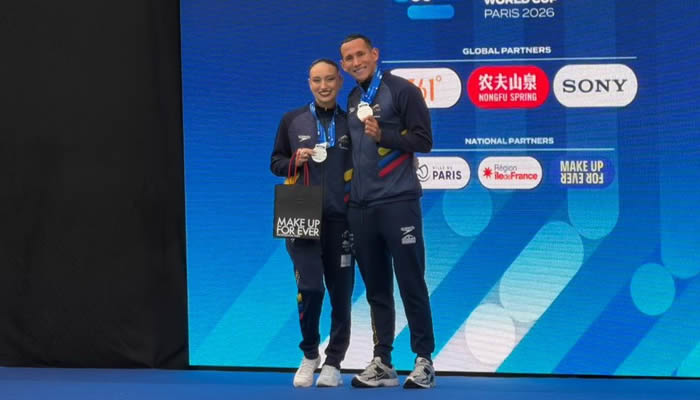 Gustavo Sánchez y Emily Minante obtuvieron la medalla de plata en la prueba de dueto libre mixto durante la segunda parada de la Copa Mundo de Natación Artística 2026, disputada este 29 de marzo en París, Francia.